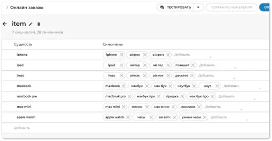 Внесите названия в «Справочник». Бот научится узнавать вашу продукцию, а еще выдавать клиенту информацию по ней (цены, характеристики) по запросу.